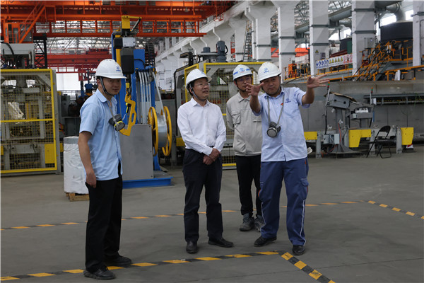宋興誠先后深入熔煉車間頂吹爐系統(tǒng),精煉車間爐前精煉、火法精煉系統(tǒng),煉渣車間煙化爐系統(tǒng)等作業(yè)現(xiàn)場,詳細了解了安全環(huán)保、工藝技術創(chuàng)新、系統(tǒng)優(yōu)化等方面情況。