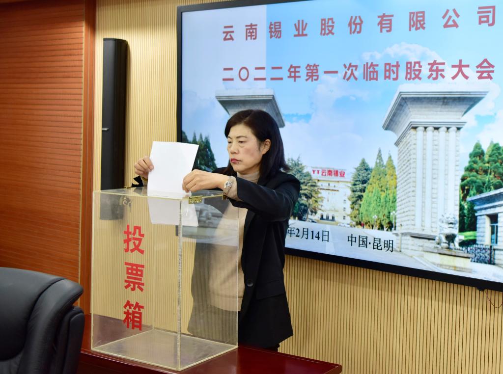 2月14日,錫業(yè)股份2022年第一次臨時股東大會在昆明辦公樓8樓會議室召開。錫業(yè)股份副董事長、總經(jīng)理楊奕敏女士主持會議。