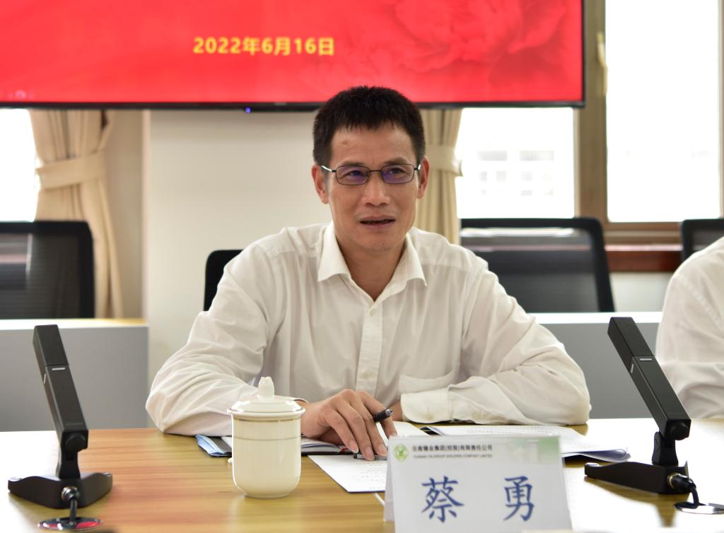 6月16日下午,廣西華錫集團股份有限公司黨委書記、董事長蔡勇一行到訪云錫??毓晒军h委書記、董事長胡均在昆明總部一樓展廳接見來賓。